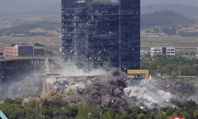 Triều Tiên tuần trước đã công bố những bức ảnh về đống đổ nát tại hiện trường, cho thấy tòa nhà dường như bị phá hủy hoàn toàn sau khi bị giật sập bằng thuốc nổ. Đông thái trên diễn ra sau khi Triều Tiên nhiều lần chỉ trích Hàn Quốc không ngăn chặn hoạt động rải truyền đơn vào nước này.