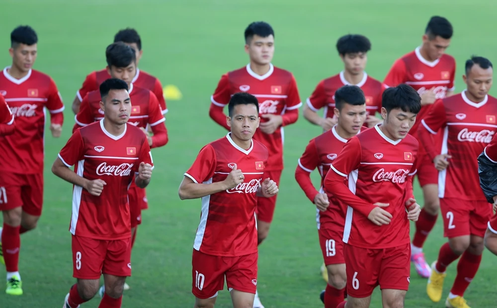 Đội trưởng Văn Quyết và đồng đội miệt mài trên sân tập. Ảnh: NGỌC DUNG