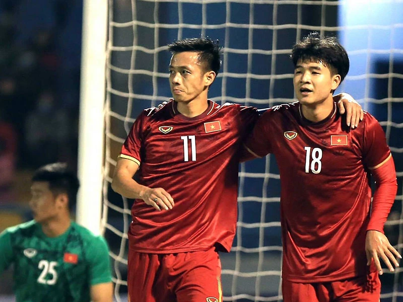 Văn Quyết và Hà Đức Chinh ghi bàn cho tuyển Việt Nam. Ảnh: NGỌC DUNG