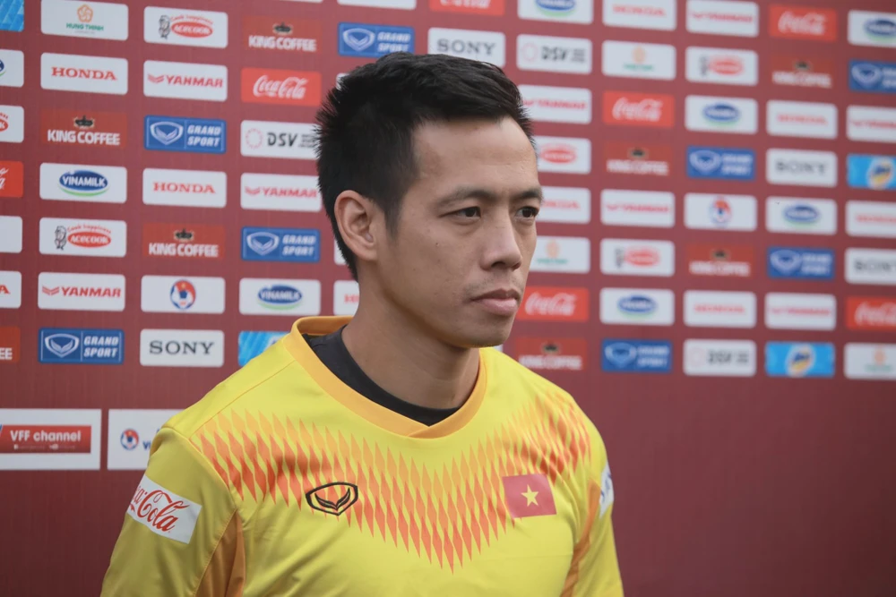 Ra ngoài mặt sân thi đấu, Văn Quyết cuối đầu chào khán giả rất nhã nhặn rồi vào khu kỹ thuật bắt tay HLV Chu Đình Nghiêm.