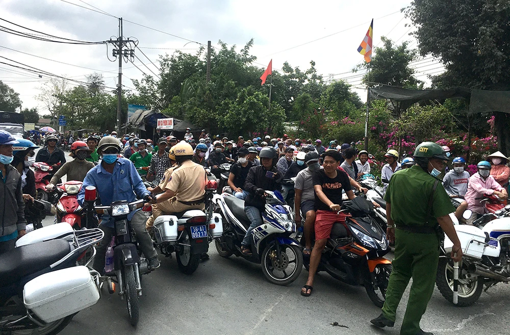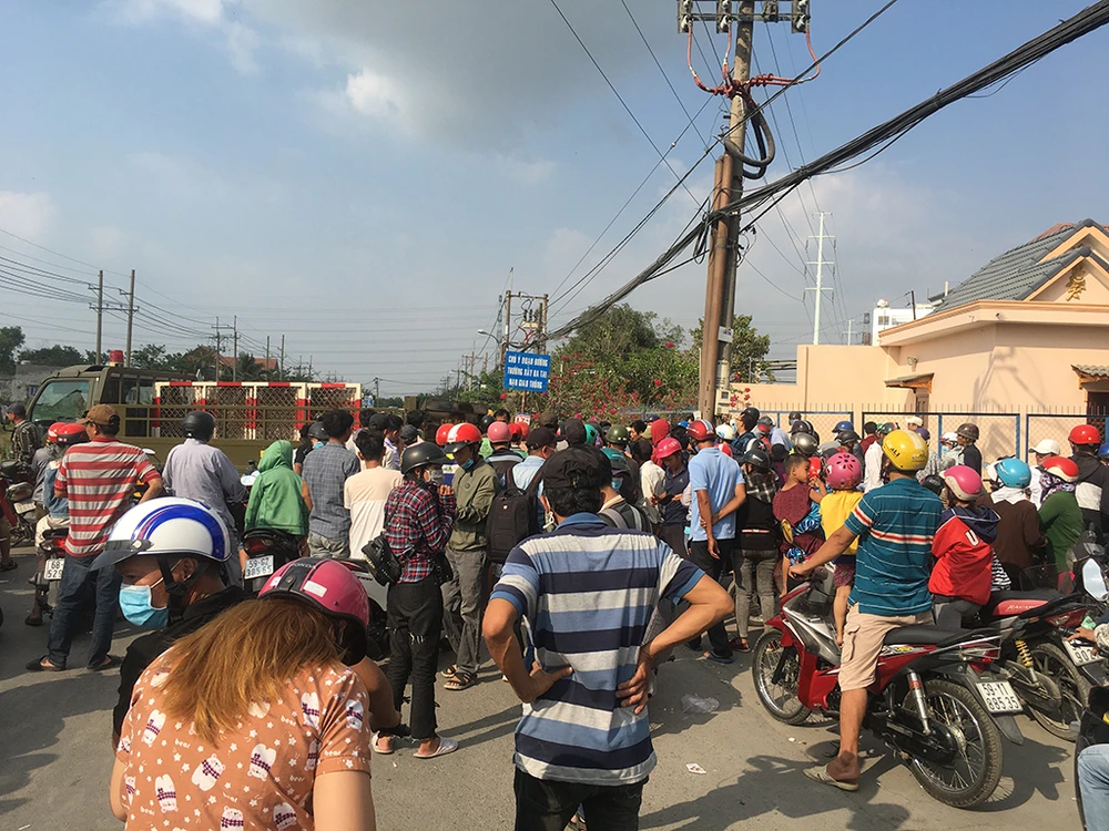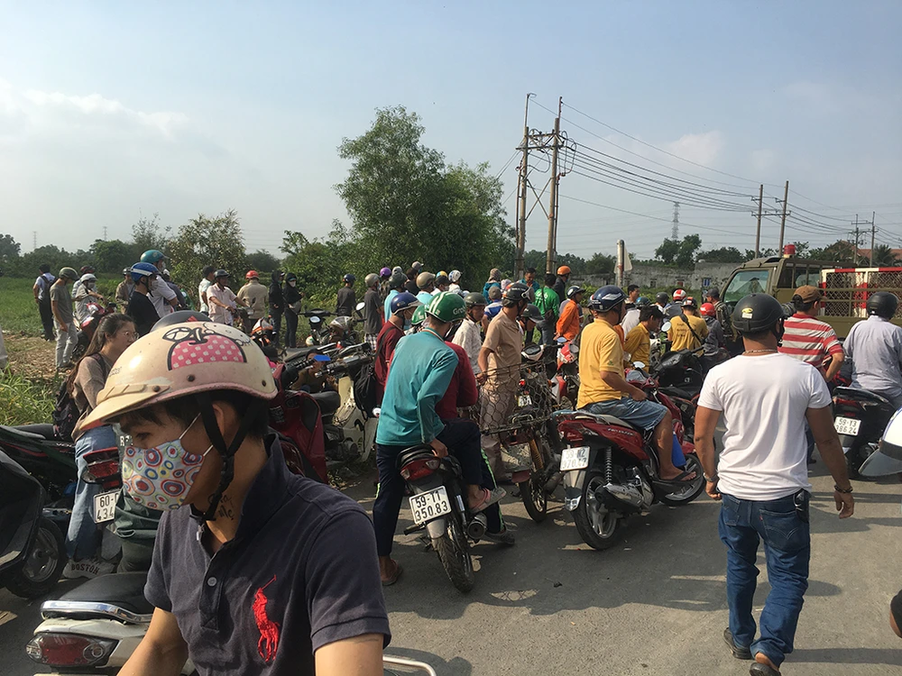 Chiều 14-2, nhiều người vẫn tiếp tục tập trung ở khu vực ngã ba Bình Mỹ, xã Bình Mỹ, huyện Củ Chi để theo dõi diễn biến vụ việc.