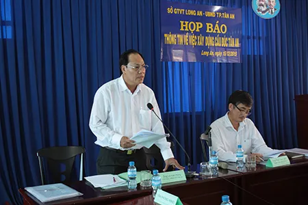 Chủ trì họp báo là ông Phạm Văn Cảnh, Giám đốc Sở GTVT Long An và ông Lê Văn Hùng, Chủ tịch UBND TP Tân An, Long An.