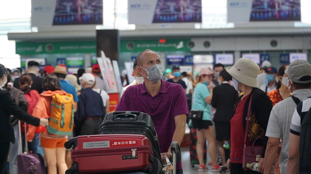 Du khách tại sân bay Đà Nẵng phải đeo khẩu trang và thực hiện phòng chống dịch. Ảnh: BÙI TOÀN.