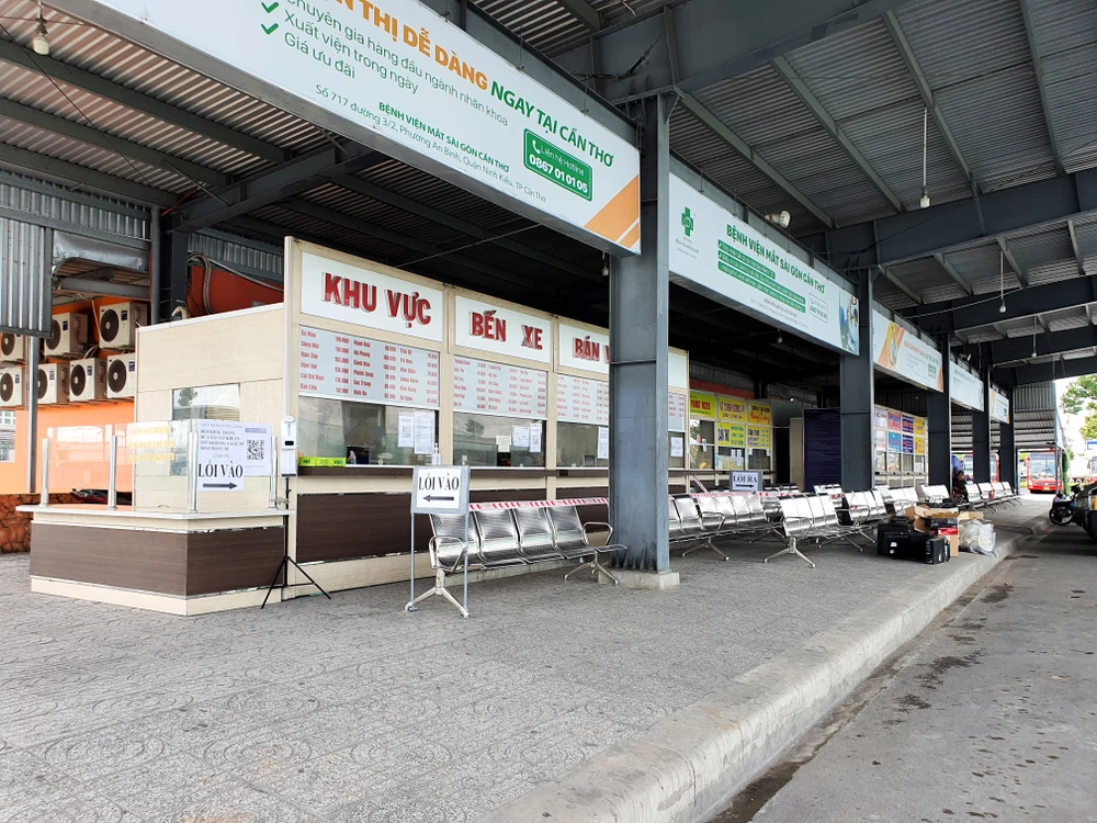 Trong thời gian hơn bốn tháng qua, bến xe trung tâm Cần Thơ yên ắng, không nhà xe liên tỉnh nào hoạt động. Ảnh: CHÂU ANH