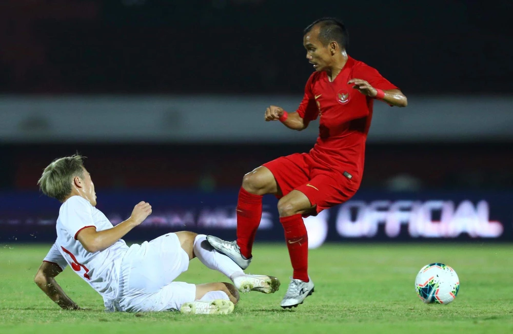 Tiền đạo tuyển Việt Nam thi đấu lăn xả trên sân bóng. Ảnh: NGỌC DUNG