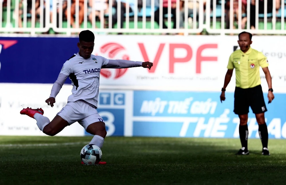 Đó là tình huống ghi bàn nâng tỉ số lên 2-1 cho Hoàng Anh Gia Lai trước Quảng Nam và là bàn thắng đầu tiên của Tuấn Anh ở mùa này.
