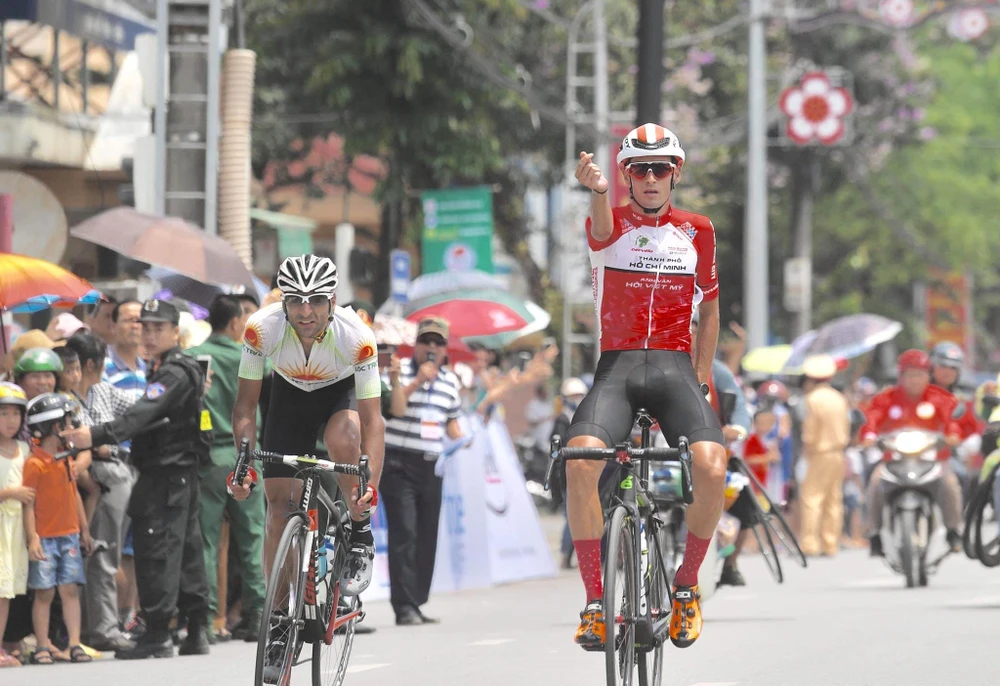 Ngoại binh TP.HCM Anh Văn Hội Việt Mỹ, Javier Sarda Perez xuất sắc vượt qua kình địch Mirsamad Pourseyed (Tập Đoàn Lộc Trời An Giang) tại mức đến giành chiến thắng chặng 3 cuộc đua xe đạp về Điện Biên Phủ 2019.