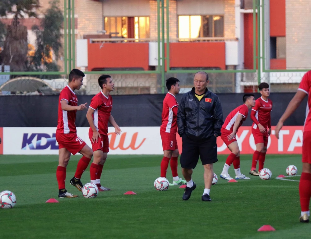 Trong các buổi tập ở UAE, ông thầy người Hàn Quốc đã tập trung rèn giũa rất kỹ các bài tấn công và phòng ngự sẽ áp dụng trong trận ra quân gặp tuyển Iraq. Ông Park và các cộng sự cũng đã nghiên cứu lối chơi của đội bóng này thông qua băng ghi hình trận đấu do VFF cung cấp. Tính chất quan trọng của các buổi tập thể hiện rất rõ qua sự tập trung tối đa của các cầu thủ trên sân.