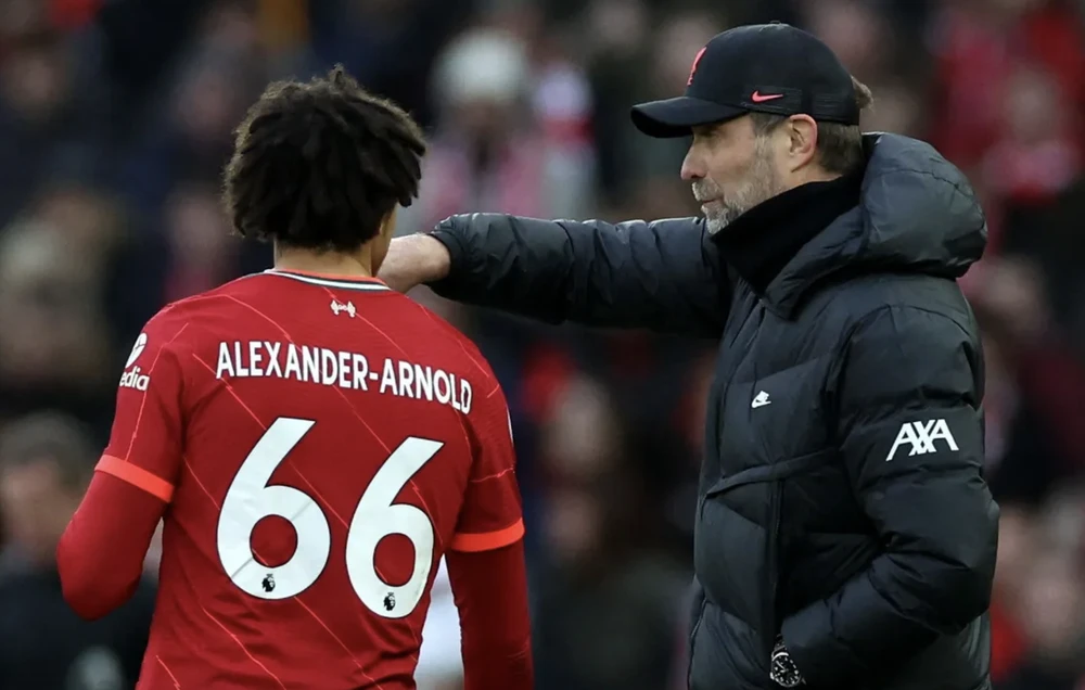 Vắng Salah và Mane, HLV Klopp chỉ đạo Alexander Arnold và Robertson tăng cường những quả tạt vào trong vòng cấm. ẢNH: PREMIER LEAGUE