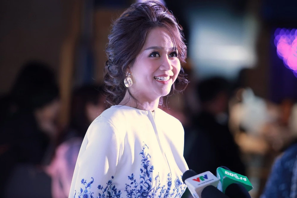 An Nguy xuất hiện với vẻ đẹp nữ tính nhưng không kém phần sang trọng trong chiếc đầm trắng thanh lịch cùng kiểu tóc búi cao, đánh rối lạ mắt. Cô trở thành trung tâm của sự kiện khi nhận được nhiều sự cổ vũ của người hâm mộ.
