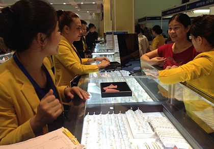 Cùng chiều với giá vàng thế giới, thị trường vàng trong nước cũng đã tuột khỏi mốc 33 triệu đồng/lượng. Giá vàng miếng SJC tại TP.HCM lúc 10 giờ sáng nay giao dịch phổ biến ở mức 32,71-32,95 triệu đồng/lượng, giảm 140.000 đồng/lượng so với chiều qua.