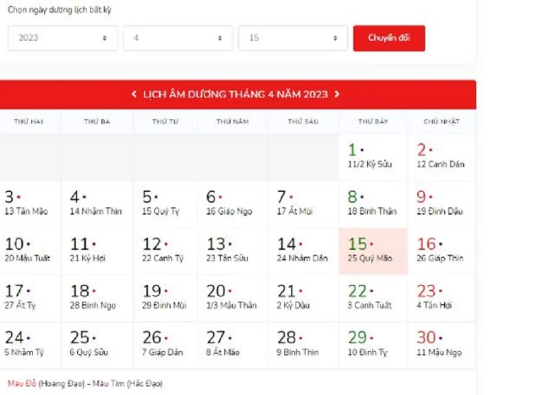 Quy đổi ngày âm dương