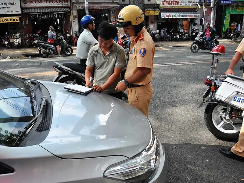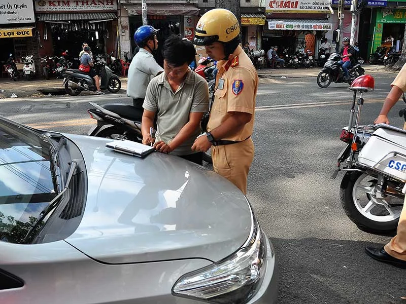 Cũng trên đường Trần Phú, cách chỗ taxi vi phạm không xa, một chiếc ô tô bảy chỗ biển số 67A-044.40 đậu ngay dưới lòng đường. Khi đoàn kiểm tra đến, một người đàn ông từ quán bún bò bước ra, xuất trình giấy tờ liên quan. Người đàn ông này tên Ngô Tấn Vinh, cho biết ông từ Long Xuyên, An Giang mới lên TP.HCM nên không rành rẽ đường sá Sài Gòn, cũng không biết nơi đây cấm đỗ xe. Các cán bộ TTGT chỉ biển cấm và giải thích với ông Vinh việc đậu xe như trên là vi phạm do đỗ ở nơi có biển cấm đỗ. Cụ thể, hành vi này bị phạt tiền với mức 600.000- 800.000 đồng và ông Vinh đã nộp phạt.
