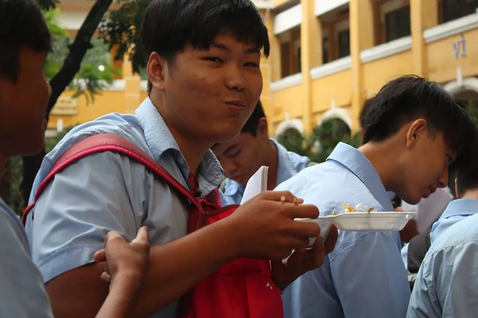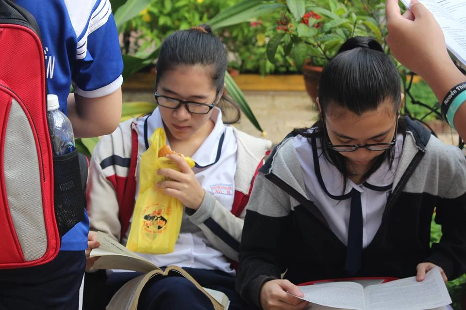 Trong khi đó, tại các điểm thi khác, không ít hình ảnh thí sinh tất bật, vừa ăn sáng vừa tranh thủ xem lại bài vở.