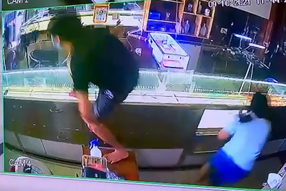 Người này yêu cầu nữ chủ tiệm vàng đưa ra hai sợi dây chuyền để chọn lựa. Lúc này, thanh niên vờ ngắm nghía rồi cầm vàng bỏ chạy.