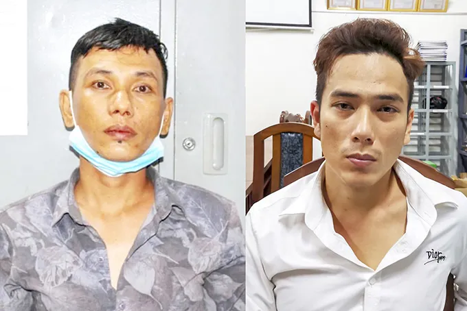 Lâm (bên phải) và Định bị công an bắt giữ. Ảnh: CTV