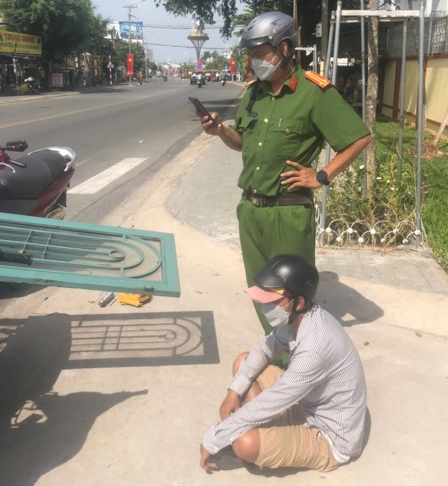 Người đàn ông bị bắt giữ khi đang trộm cửa sắt tại trụ sở công an. Ảnh: CACC