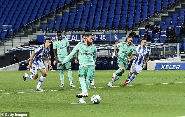 Trên chấm 11m, đội trưởng Ramos bình tĩnh sút bóng đánh lừa thủ thành Remiro ghi bàn mở tỉ số 1-0 cho Real Madrid. Sau bàn thắng này ít phút, Ramos phải rời sân vì chấn thương.