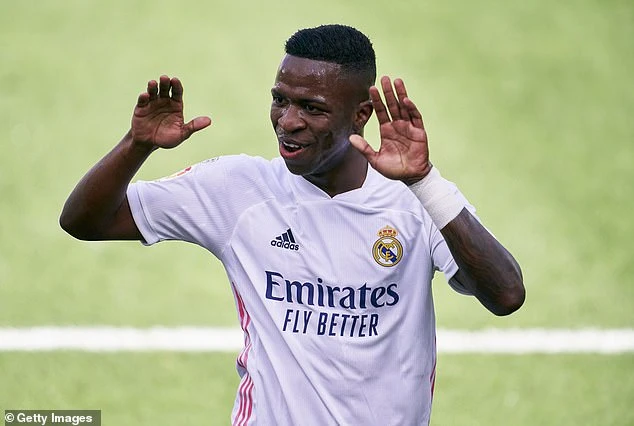 Vinicius ăn mừng sau pha dứt điểm kỹ thuật mở tỉ số cho Real Madrid. Ảnh: Getty Images