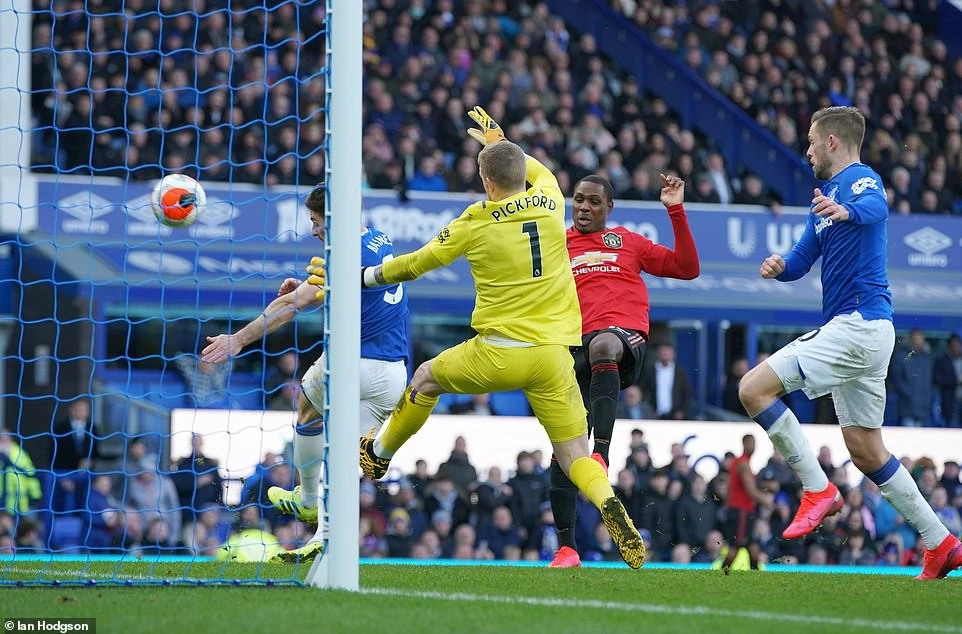 Thời gian càng trôi về cuối, thì kịch bản trận đại chiến giữa Everton và Man. United càng thêm hấp dẫn. Phút 90, xuất phát từ pha phát bóng của thủ môn De Gea, Man. United nhanh chóng tổ chức phản công nhanh và có được liên tiếp hai pha dứt điểm cận thành của Bruno Fernandes và tiền đạo Ighalo. Tuy nhiên, thủ môn Pickford của Everton hóa “người nhện” khi liên tiếp cản phá thành công cả hai pha dứt điểm của tiền đạo đối phương.