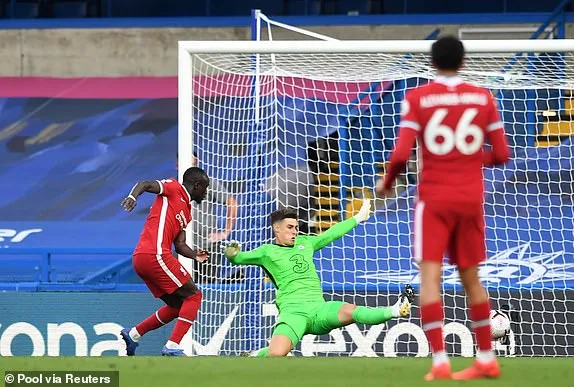 Chỉ 4 phút sau, Liverpool tiếp tục có bàn thắng nhân đôi cách biệt. Trong hiệp 1, thủ môn Kepa phán đoán tình huống không tốt khiến Chelsea suýt nhận bàn thua thì lúc này thủ thành người Tây Ban Nha này lại chuyền bóng thẳng vào chân Mane để Mane dễ dàng đệm bóng vào lưới trống nâng tỉ số lên 2-0 cho đội khách Liverpool.