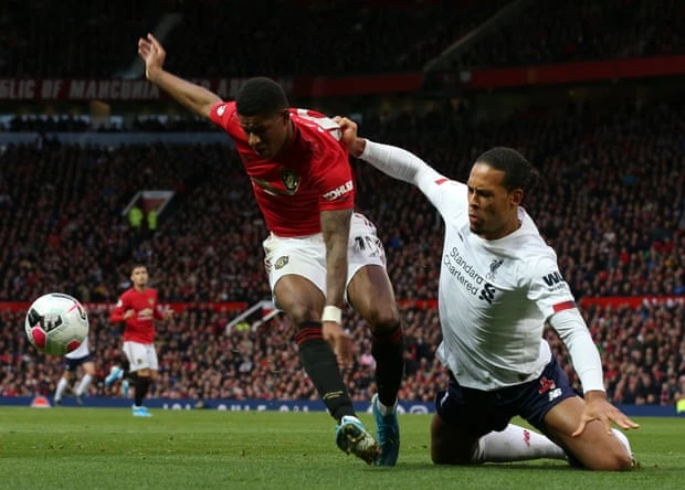Đến phút 44, Liverpool có được cơ hội san bằng cách biệt khi Mane tranh chấp bóng bổng thành công với trung vệ Lindelof bên phía MU rồi vung chân dứt điểm vào lưới MU. Thế nhưng sau khi xem lại công nghệ VAR, trọng tài Martin Atkinson không nhận bàn thắng gỡ hòa, vì cho rằng Mane đã dùng tay chơi bóng. Man. United khép lại hiệp một trận Derby nước Anh với lợi thế dẫn trước 1-0, mặc dù đội bóng của HLV Solskjaer cầm bóng chỉ 37%.