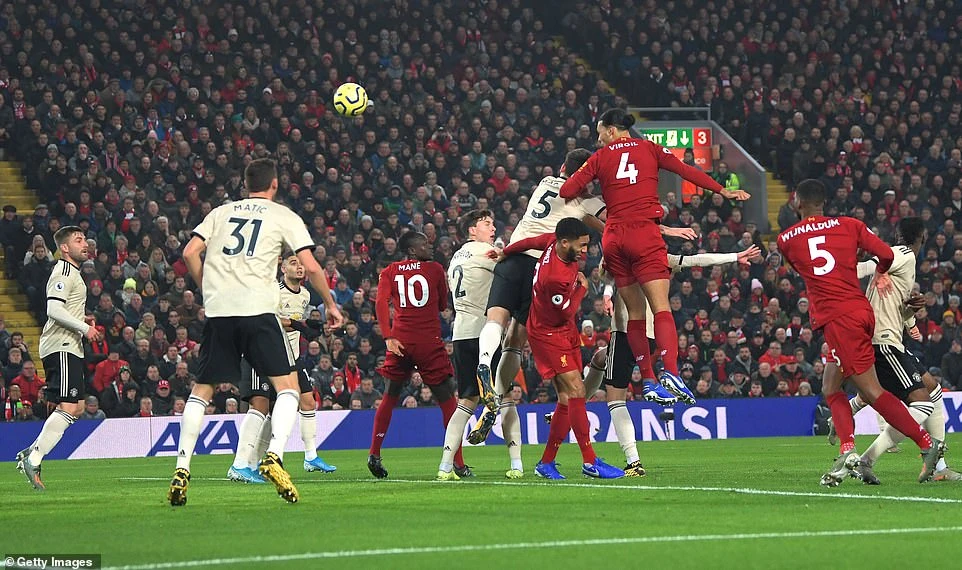 Đường tạt bóng vừa tầm của Arnold giúp Van Dijk đánh đầu mở tỉ số cho Liverpool.