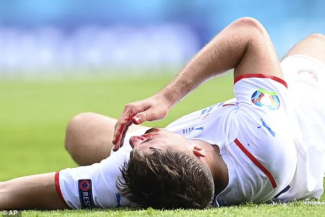Chính Schick với chiếc mũi “đẫm máu” bước lên chấm penalty ghi bàn thắng thứ ba tại VCK Euro 2020 để vươn lên dẫn đầu danh sách vua phá lưới.