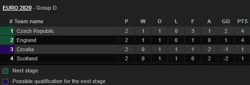 Trong khi đó, Croatia và Scotland đối đầu nhau trong cuộc chiến sống còn. Đội thắng ở cặp đấu này nhiều khả năng vẫn sẽ vào vòng knock-out, ít nhất là với tư cách 1 trong những đội đứng thứ 3 bảng có thành tích xuất sắc nhất.