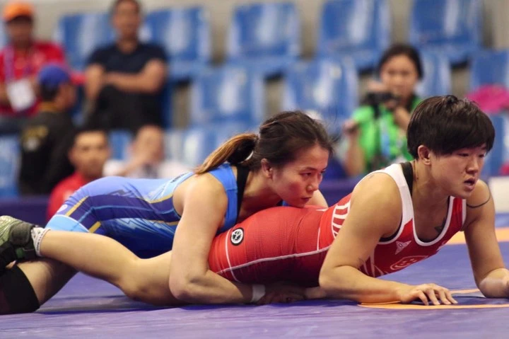 ... và Nguyễn Thị Mỹ Hạnh thi đấu xuất sắc giành hat-trick vàng môn vật ngày 10-12 tại SEA Games 30. ẢNH: NGỌC DUNG