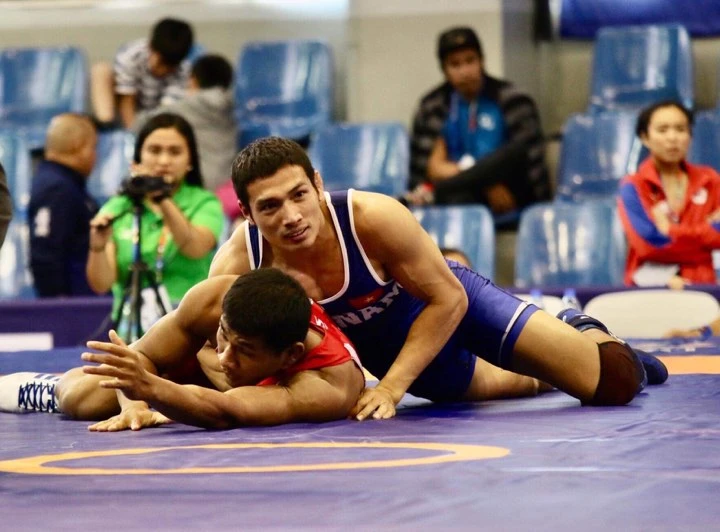 Đô vật Cấn Tất Dự giành HCV SEA Games 30. ẢNH: NGỌC DUNG
