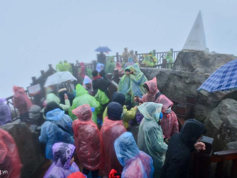 Tại điểm du lịch ở Lào Cai, hàng ngàn du khách vẫn bất chấp cái lạnh đến âm 4 độ C cùng với gió mạnh để lên đỉnh Fansipan nhằm ngắm cảnh tuyết rơi. Những người đi bộ lên Fansipan đều phải mặc áo mưa, đeo khẩu trang để chống lạnh.