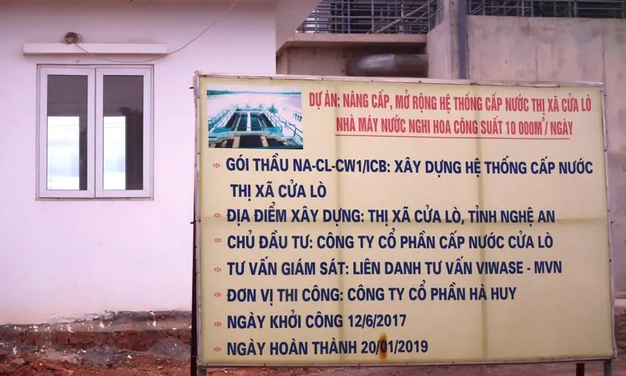 Cho đến chiều 6-8, sau hai năm khởi công, Nhà máy nước Nghi Hoa có công suất 10.000 m3/ngày thuộc Dự án nâng cấp, mở rộng hệ thống cấp nước tại thị xã Cửa Lò (Nghệ An) vẫn chưa thể hoạt động. Nhà máy này đã chậm hoàn thành hơn sáu tháng so với kế hoạch đề ra. Hạng mục hồ sâu lắng đang đang thi công dở dang.