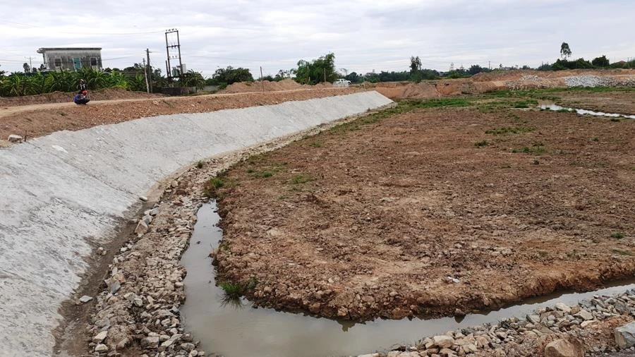 Hồ chứa nước đang thi công dở dang.