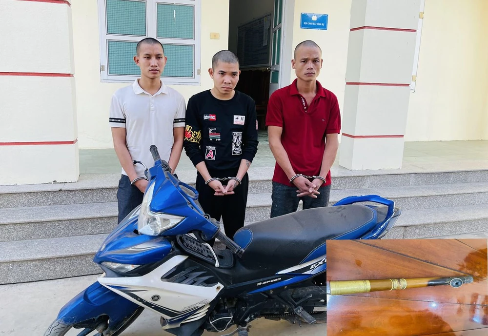 Ba đối tượng Tùng, Sơn, Hùng và tang vật vụ án. Ảnh: CATH cung cấp