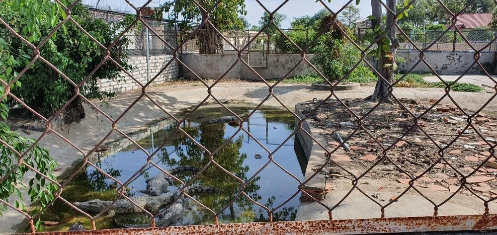 Hàng rào ngăn cách giữa hai bên có thể dễ dàng đi qua. Ngoài khu vực nuôi cá sấu trưởng thành, doanh nghiệp còn có có khu vực nuôi cá sấu con...