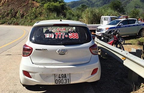 Chiếc taxi bị nhóm cướp bỏ lại khi thấy CSGT. Ảnh: TR.THU