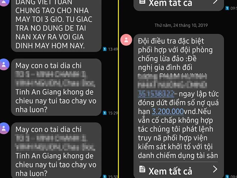 Tin nhắn khủng bố liên tục đẩy lên điện thoại.
