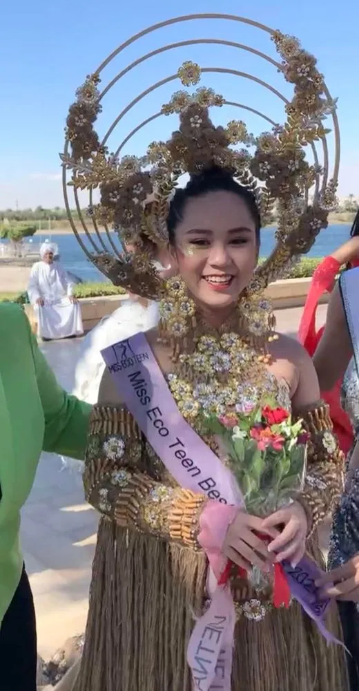 Vũ Huyền Diệu là thí sinh có phần thi trang phục về Môi trường ấn tượng nhất tại cuộc thi Hoa hậu sinh thái Quốc tế 2021. Ảnh: CTV