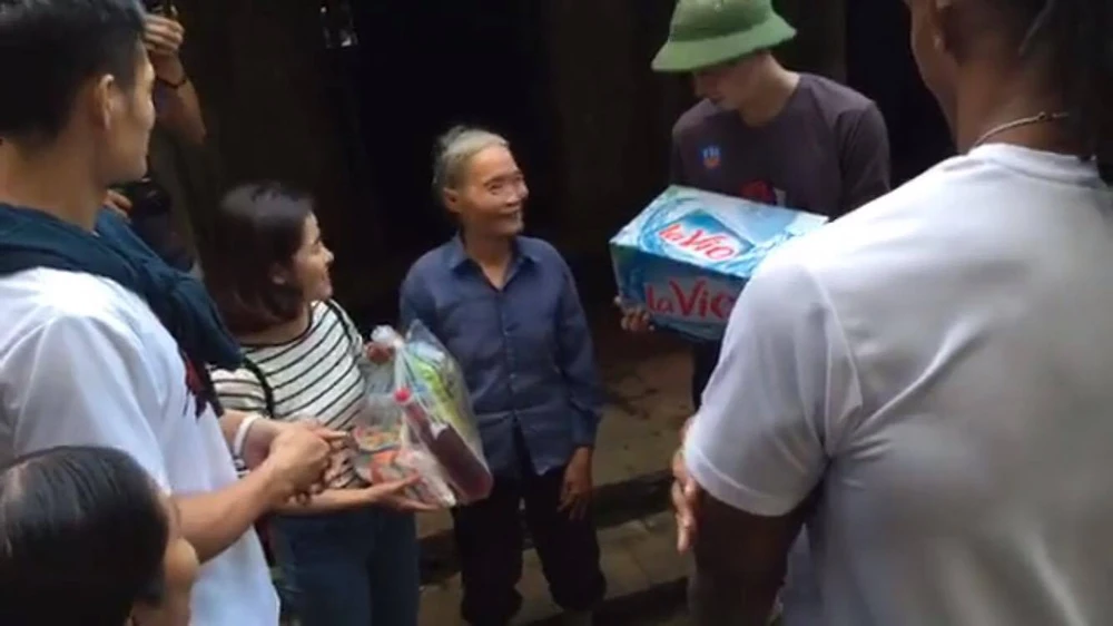 Các phần quà được trao tận tay cho bà con vùng lũ.