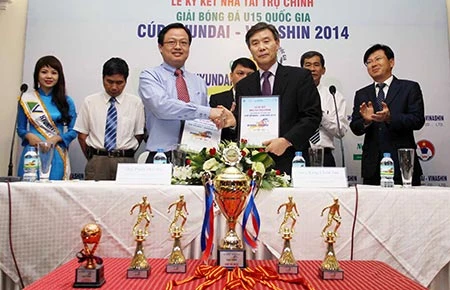 Lễ ký kết với nhà tài trợ chính của giải - Hyundai Vinashin. Ảnh: XUÂN HUY