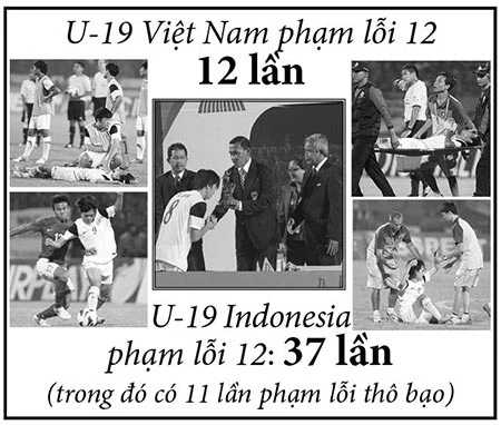 Hình ảnh được ghi lại từ trận chung kết U-19 năm ngoái mà Indonesia tìm chiến thắng thô bạo triệt hạ các cầu thủ U-19 Việt Nam. Đồ họa: BB
