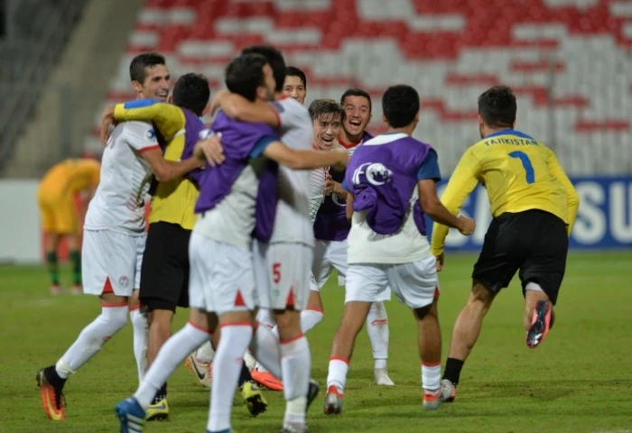 Tajikistan mừng khi hòa Úc 0-0 và vào tứ kết.