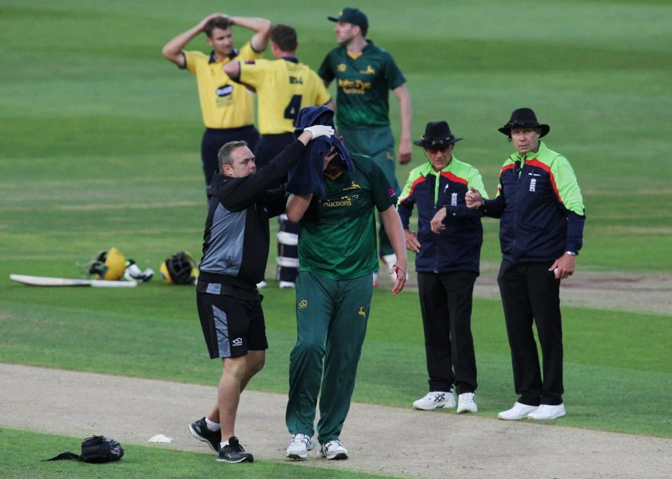 Luke Fletcher lập tức đổ gục xuống sân. Trọng tài và các VĐV có mặt trên sân nhanh chóng kêu đội ngũ y tế lập tức vào sân chăm sóc cho Luke Fletcher. Các đồng đội của Luke Fletcher sau khi nhìn thấy chấn thương của Luke Fletcher đã ôm mặt, ôm đầu hoảng sợ. Đồng đội của Fletcher, tuyển thủ quốc gia Anh Samit Patel, thậm chí bật khóc khi chứng kiến hình ảnh chấn thương đó.