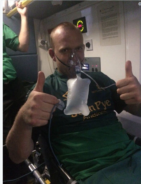 Bức ảnh Luke Fletcher giơ hai ngón tay cái trấn an người hâm mộ.