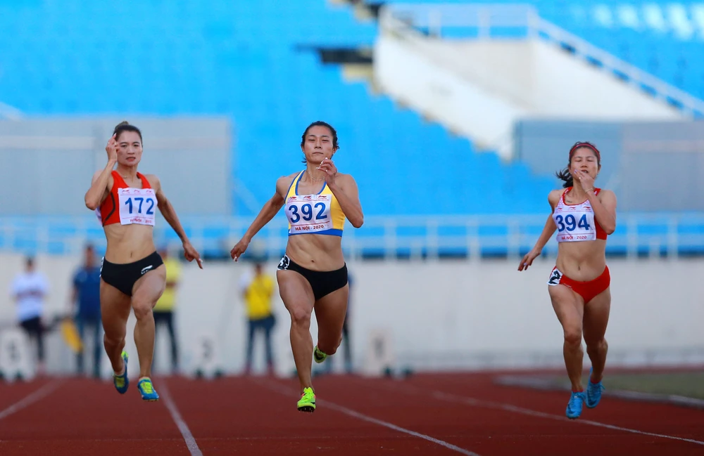 Ở cùng nội dung này dành cho nữ, nhà vô địch SEA Games 30 Lê Tú Chinh với sự vượt trội so với các VĐV còn lại, cũng dễ dàng đạt thành tích 11 giây 42, bảo vệ thành công chức vô địch 100 m nữ.