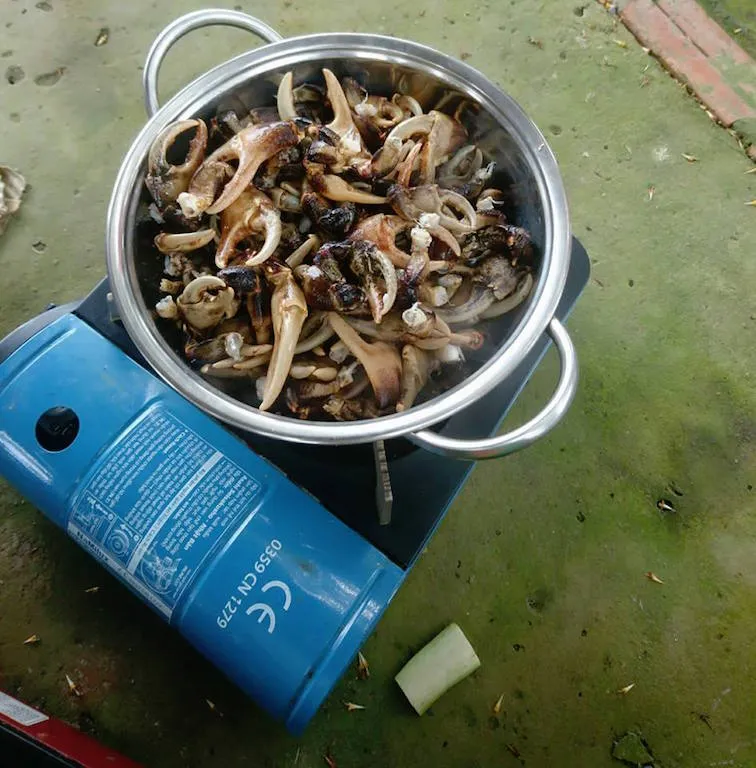 Chỉ một lát thôi, nồi mắm kho nấu với cá linh, ốc nướng tiêu hột, cua đồng rang muối, mấy con cá nướng trui đã bắt đầu thơm nức mũi. Giữa tứ bề sông nước mênh mông, gió thổi lồng lộng, bạn bè tứ hải giai huynh đệ khoan khoái thưởng thức những món ngon gió nội hương đồng.