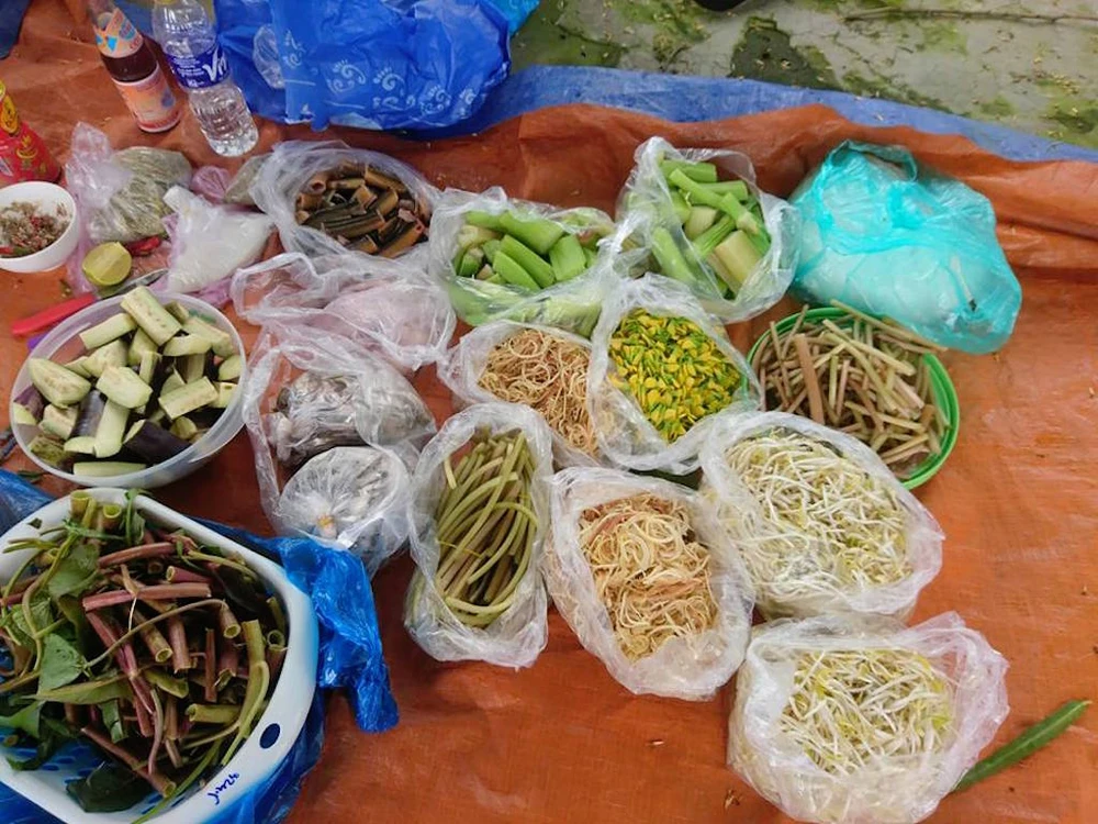 Những loại rau dân dã của miền sông nước: điên điển, bông súng, rau muống nước...