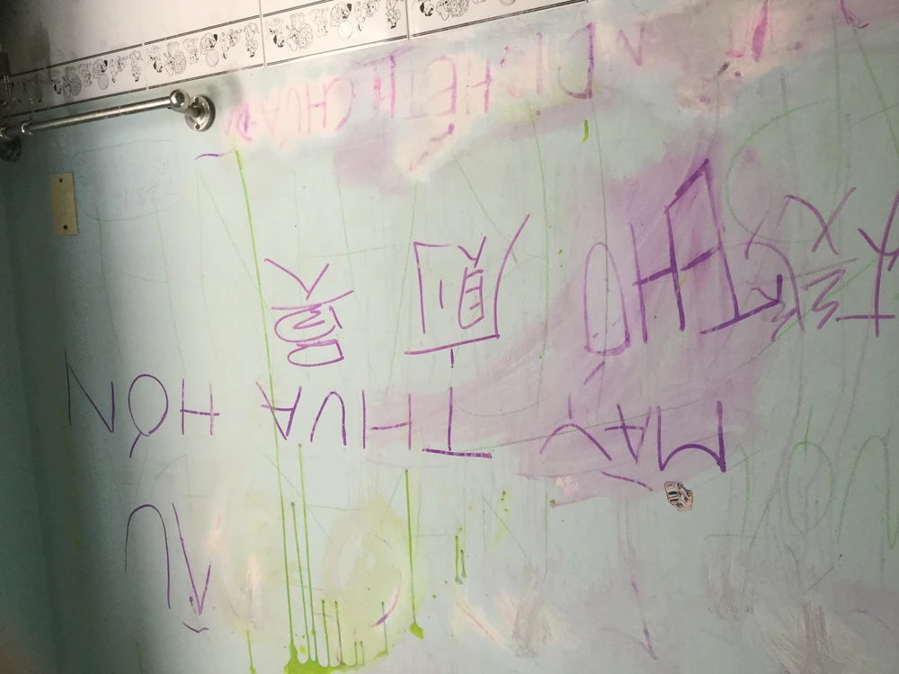 Trong thời gian này, con trai bà dọn ra ngoài sống, bà sống chung với con dâu cùng hai đứa cháu nội. Vì gia đình suốt ngày cãi vã, bà muốn bán căn nhà này để đi nơi khác sinh sống. Trong lúc đang rao bán nhà thì sáng 23-5, con dâu bà lấy mực vẽ khắp tường nhà và còn viết những dòng chữ trên tường xúc phạm bà (ảnh). Quá bức xúc, bà đã nhờ công an phường đến kiểm tra và xử lý. Tuy nhiên, công an chỉ xuống xem rồi ra về mà không giải quyết gì.