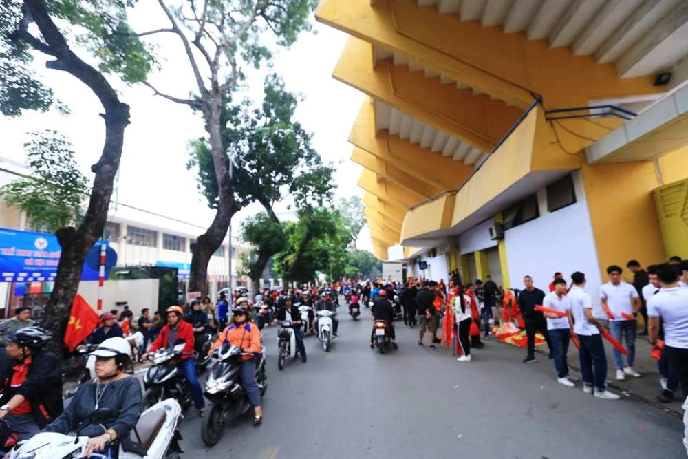 Không khí trước sân Hàng Đẫy đã sôi động từ chiều.